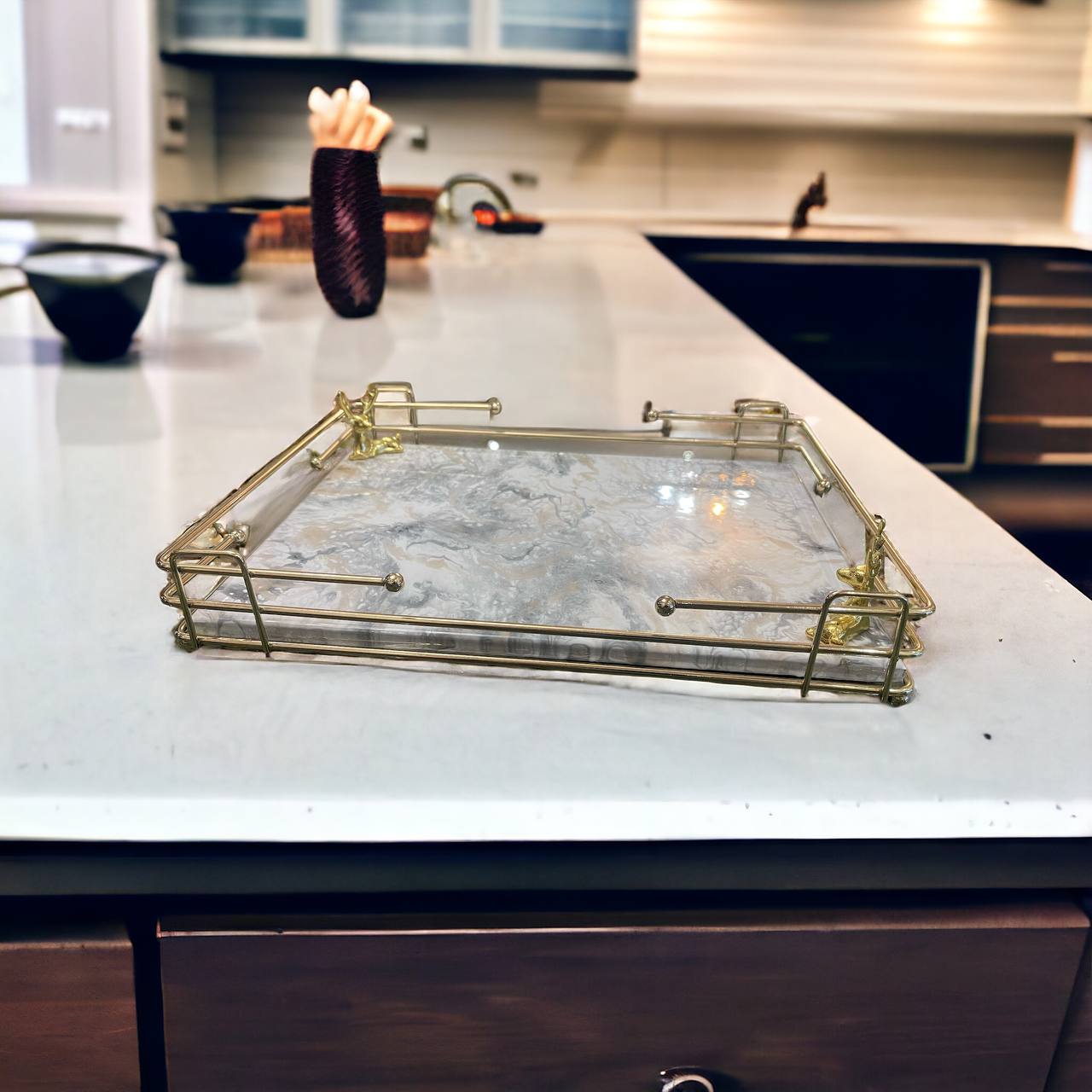 سینی پذیرایی رزین طرح مرمر: لمسی از لوکس و زیبایی در میزبانی